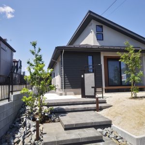広い駐車場とフローステップ|日立市のエクステリア・外構工事・駐車場工事・ウッドデッキ・テラス・門・表札のことならEX-TRUST